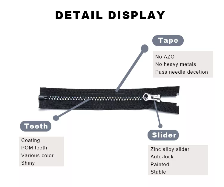 TRC 플라스틱 코팅 지퍼는 기존의 수지 톱니 체인 구조에 특수 표면 코팅을 적용하여 톱니를 더 매끄럽고 더 촘촘하게 만듭니다. 이는 제품의 매끄러움과 내마모성을 크게 향상시킵니다. 동시에 코팅층은 치아의 산화 저항성 및 수분 보호성을 효과적으로 강화하는 동시에 기능성과 심미성을 결합하여 외관에 독특한 광택을 부여합니다.
